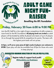 Join the RFL Staff for a fun night of team competitions and skills contests while helping to raise funds for the RFL Foundation!