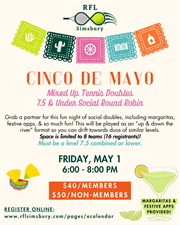Grab a partner & join RFL for our Cinco de Mayo Mixed Up Tennis Doubles 7.5 & Under Social Round Robin!
